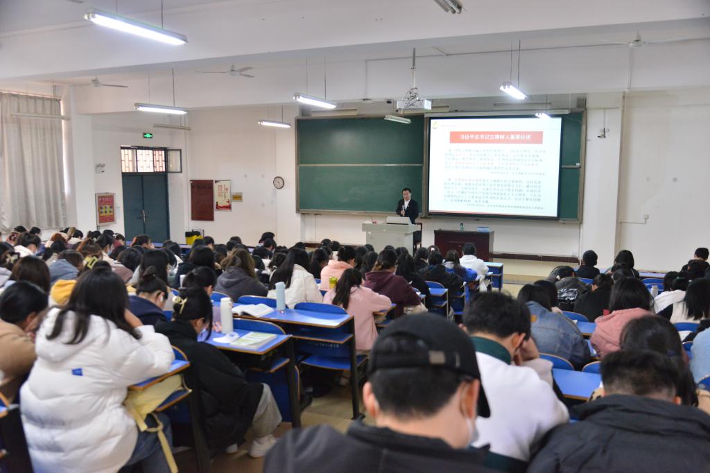 11月25日上午,校纪委书记、监察专员何瑞强为外国语学院2021级商务英语(民航服务英语方向)、商务英语、英语等专业学生讲授思政课。